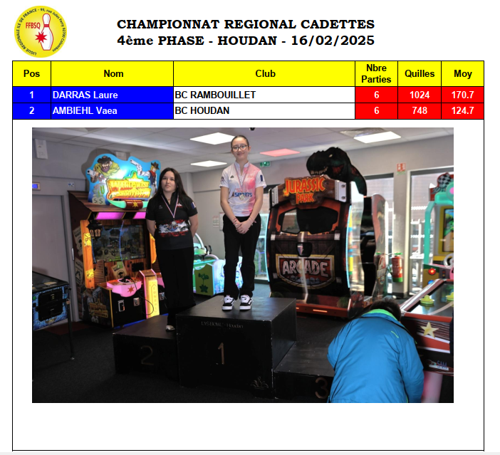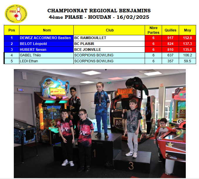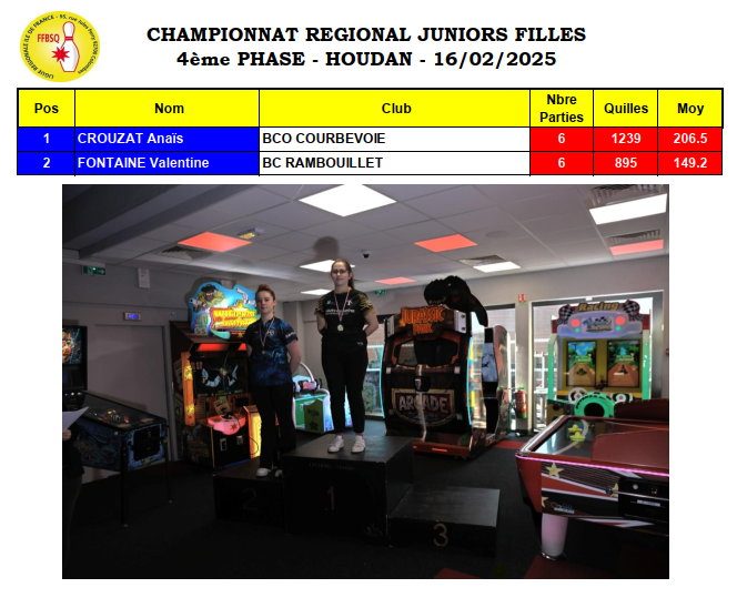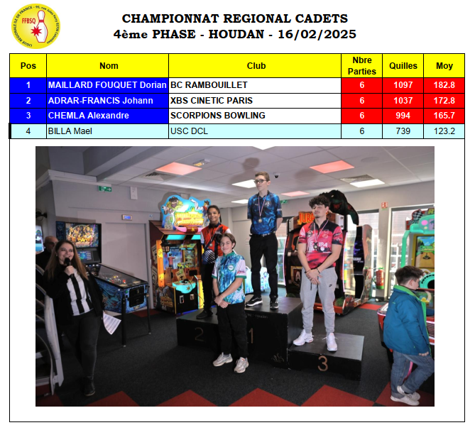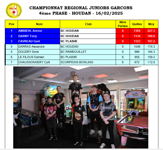 Résultats championnat régional 4 ème phase à Houdan